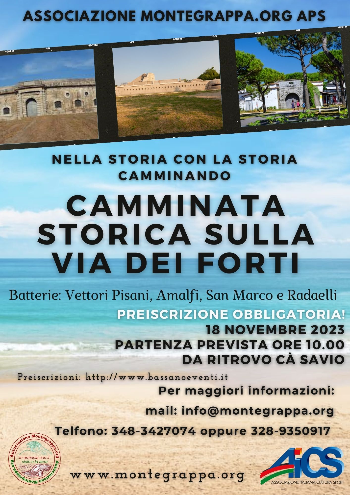 La camminata è adatta a persone che abbiano un minimo di allenamento e abituate a camminate pari o superiori ai 10 km. Questa camminata unirà in se il piacere di camminare in piena natura in una zona molto caratteristica in una lingua di terre che divide la laguna di Venezia dal mare La camminata è organizzata dall'associazione Montegrappa, dalla Asd Nordic Walking Montegrappa e Bassano Eventi. Il percorso è adatto anche ai praticanti del nordic walking.