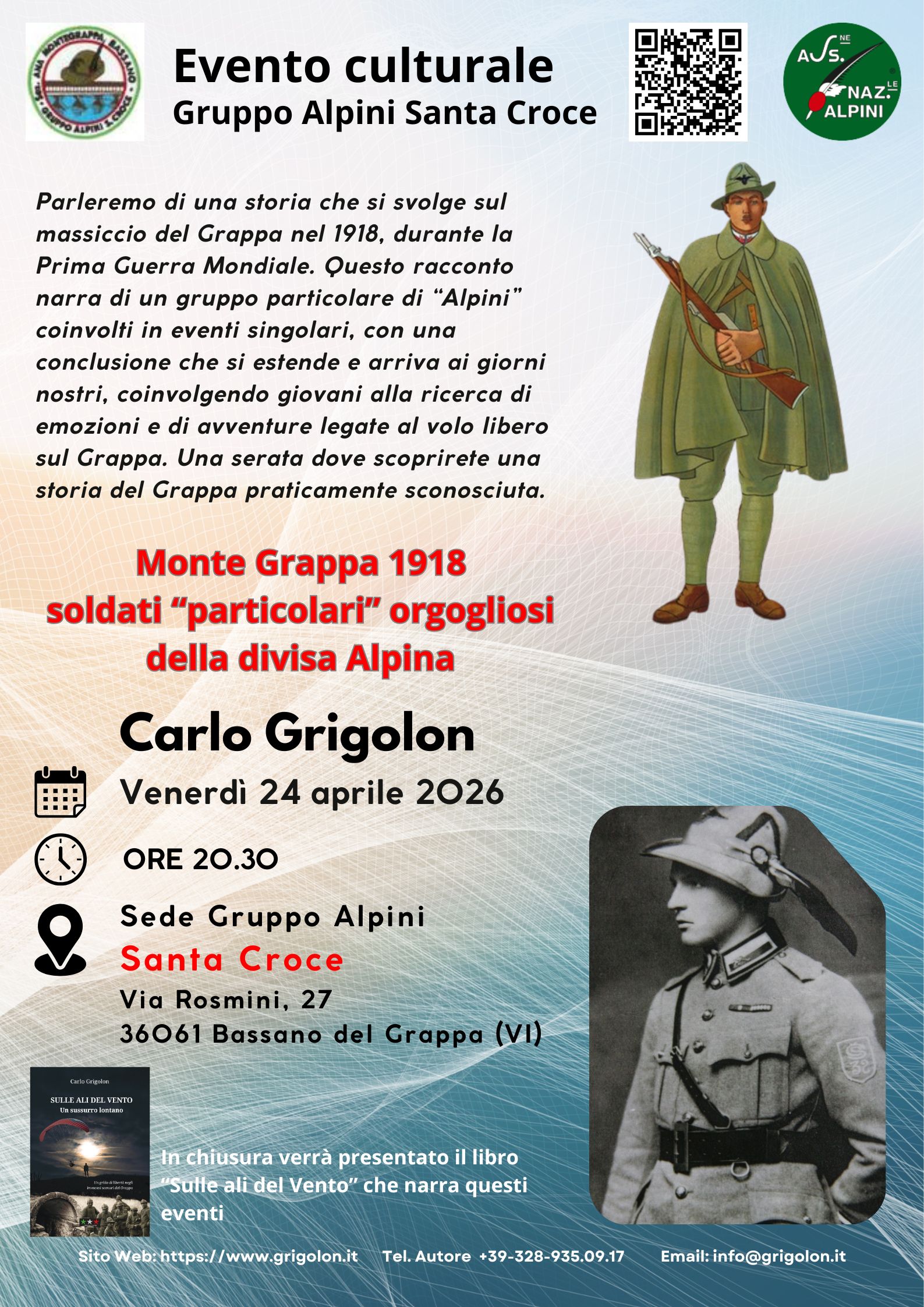 Durante l’incontro, l’autore sarà a disposizione per approfondimenti sulla Grande Guerra, con particolare riferimento agli eventi che hanno interessato il Monte Grappa.